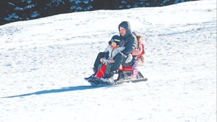 Ilgaz Dağı Kayak Merkezi'nde kar yağışının yetersiz olması nedeniyle vatandaşlar kızaklarıyla kaydı.
