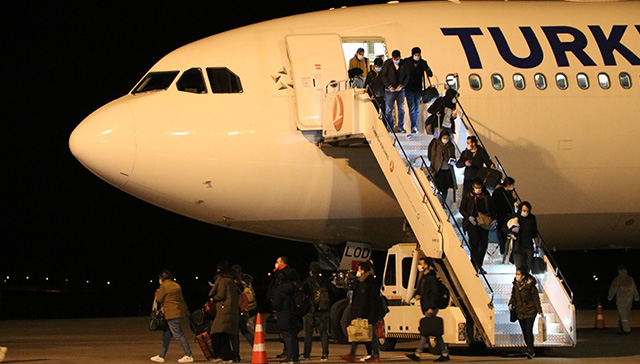 Yüzleri maskeli öğrenciler kendilerini görüntüleyen basın mensuplarına el salladı. Koronavirüs tedbirleri altında hava limanına inen öğrenciler, Kredi Yurtlar Kurumu (KYK) Binali Yıldırım Öğrenci Yurduna yerleştirilmek üzere otobüslere bindirildi. Öğrencilerin bir süre burada gözetim altında tutulacak. Öte yandan, Edinburgh, Zürih ve Kahire’den Türk öğrencileri taşıyan uçakların da Sivas’a inmesi ve buralardan gelecek öğrencilerin de Sivas’taki yurtlara yerleştirilmesi planlanıyor.