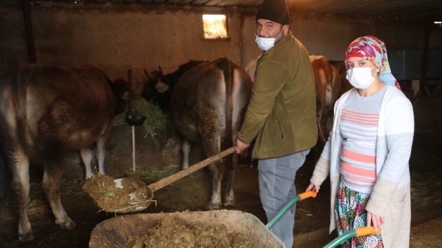 İŞKUR’un engellilere verdiği destekten faydalanan Aysun Ünsal, eşi Ramazan Ünsal’ın da yardımıyla 4 inek alarak işe koyuldu. Genç kadın elde ettiği gelirle ev ekonomisine katkı sağladı. Ünsal, gebe olan 4 ineğinin yavrularını doğuracağı günü hevesle bekliyor.