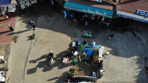Kartal sahilde havadan görüntülenen balık pazarında sosyal mesafeyi hiçe sayan vatandaşlar alışverişlerini yapmaya devam ederken Maltepe'de bir marketin önünde sosyal mesafe kuralına çok dikkat eden vatandaşlar gözden kaçmadı. Market çalışanlarının uyarılarını dikkate alan vatandaşlardan bazıları temel ihtiyaçlarını almak için geldiklerini ifade ederken bazıları da çocukları için alışveriş yapacaklarını söyledi. “Ekmek alacağım, süt alacağım; direktiflere uymaya çalışıyoruz” ifadelerini kullanırken, market çalışanı, “Müşterilerimizi azar azar içeriye alıyoruz, mesafeyi koruyoruz, müşterilerimize anlatıyoruz. Biz çok yoğunuz, en çok sebze, meyve talep görüyor. Makarna ve una da ilgi çok fazla” dedi.