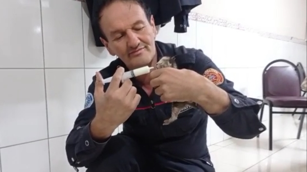 BURSA İnegöl'de itfaiye erleri, bir aracın motor kısmında mahsur kalan 3 yavru kediyi kurtardıktan sonra süt dolu enjektörlerle besledi. Soğuktan ölmek üzereyken kurtarılan kediler, itfaiye merkezine götürüldü.