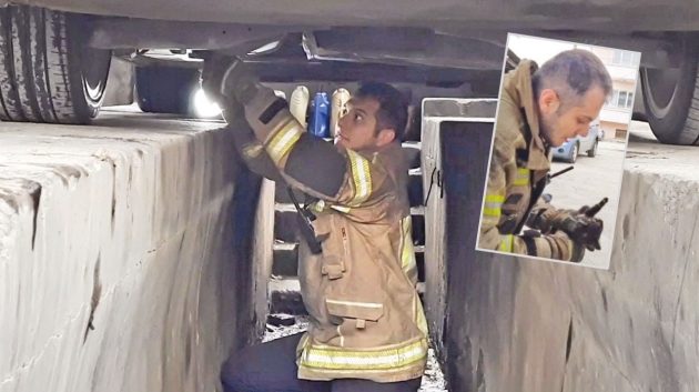 Motor kısmından gelen sesi duyan Özdemir, itfaiye ekiplerine haber verdi. Gelen itfaiye ekipleri, uzun uğraşlar sonucu kediyi çıkardı.