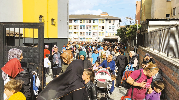 Depreme okulda yakalanan öğrenciler, bahçelere çıkarıldı. Silivri, Avcılar ve Gaziosmanpaşa'da öğretmenlerinin gözetiminde tahliye edilen öğrencileri veliler okul kapısında bekledi.