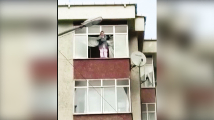 Esenyurt'taki bir kadın deprem sırasında cama çıkarak çığlık attı.