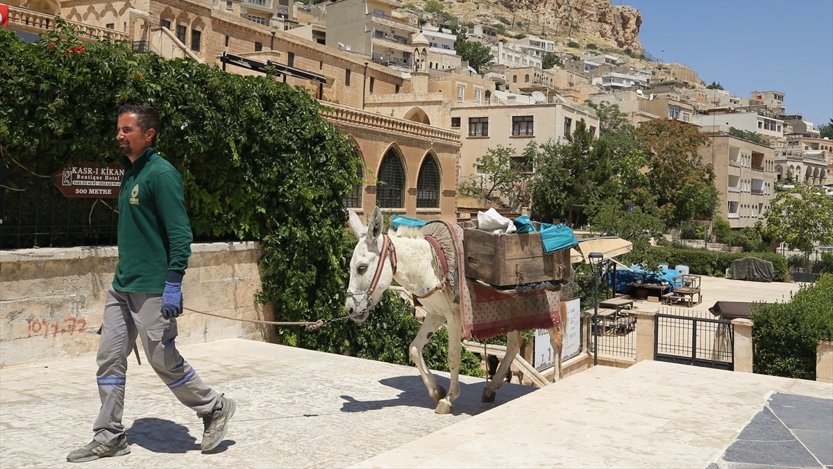 Mardin'de, araçların giremediği sokaklarda çöpler, belediye bünyesinde kadrolu çalıştırılan, sırtlarına kovalar bağlanan eşekler yardımıyla toplanıyor. Artuklu Belediyesi görevlileri, her sabah eşeklerin konakladığı Teker Mahallesi'ndeki "tavla" olarak tabir edilen alana gelerek gerekli hazırlıkları tamamlıyor.