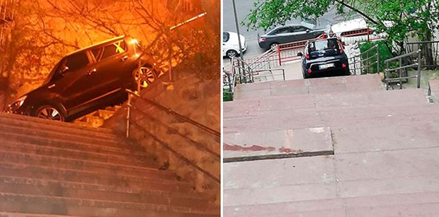 Kağıthane'de sürücüsünün yolun devamı sanıp merdivenlere sürdüğü otomobil mahsur kaldı.