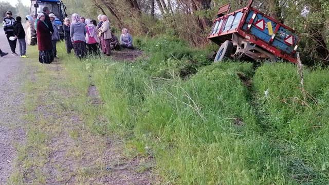 Kahramanmaraş'ın Afşin ilçesinde tarım işçilerini taşıyan traktörün pimi yerinden çıkan römorku şarampole savruldu. Kazada, 7 işçi yaralandı.