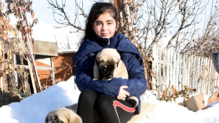 SİVAS'ta köpek uzmanı Orhan Yalçınkaya'nın kızı Naz Yalçınkaya (12), kangal köpeklerinin arasında büyüyor. Babası çiftlikte köpeklerin bakımını yaparken, bebekliğinden itibaren hayvanlarla iç içe olan Naz da yavrularıyla ilgileniyor.