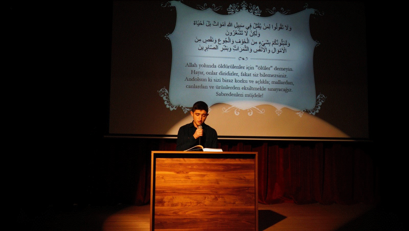 Sunuculuğunu İsmail Furkan Kaklık'ın yaptığı anma programı hafız Metehan Danyeri'nin Kur'an tilavetiyle başladı.