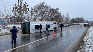 İstanbul'dan Taşköprü ilçesinin Yazıhamit köyüne cenazeye gidenlerin bulunduğu Esenler Belediyesine ait sürücüsü öğrenilemeyen 34 EEA 343 plakalı otobüs, Yazıhamit köyü mevkiinde devrildi.