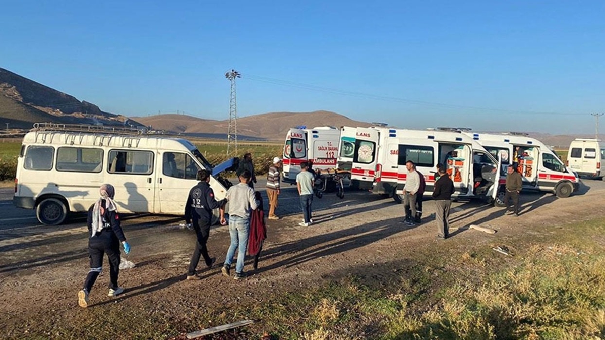 Kayseri'de tarım işçilerini taşıyan minibüs ile yakıt tankerinin çarpışması sonucu 15 kişi yaralandı.