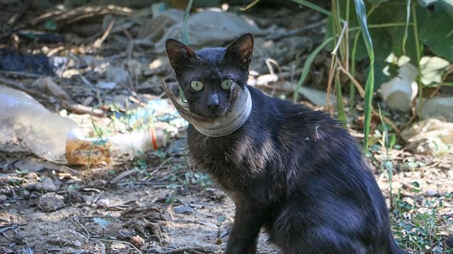 Yakalanamayan kedinin, veteriner hekim yardımıyla bayıltılması ve boynundaki cam parçasının çıkarılması planlanıyor.