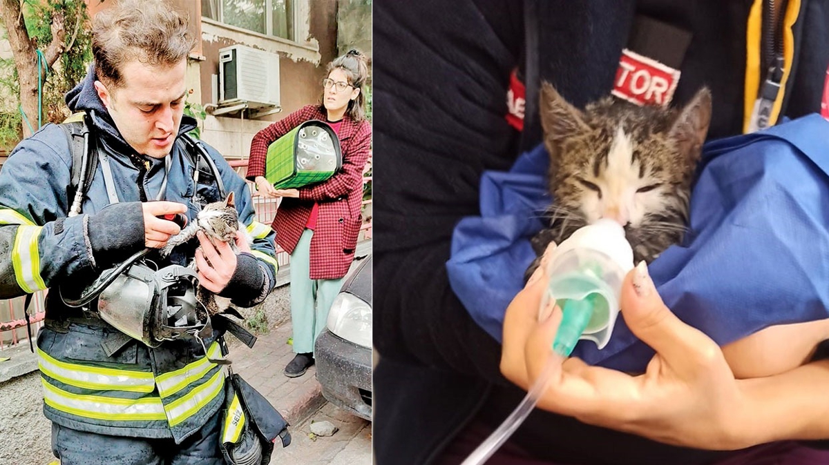 İzmit'te bir evde çıkan yangında dumandan etkilenen ve yarı baygın halde bulunan kedi, itfaiye ve sağlık ekiplerince verilen oksijenle kurtarıldı.