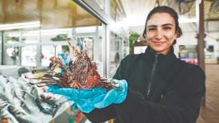 AKDENİZ ve Ege'de balık popülasyonuna zarar veren aslan balığının zehirli dikenleri kesildikten sonra yapılan çorbası, tavası ve ızgarası büyük ilgi görüyor.