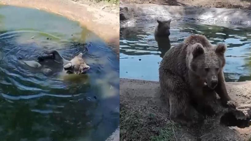 Milli Parklar Genel Müdürlüğü'nün sosyal medya hesaplarında paylaşılan görüntülerde, ayıların neşeli halleri dikkat çekti. İzleyenlere tebessüm ettiren karelerde ayıların suya girip oynadığı, güneşin altında dinlendiği anlar yer aldı.