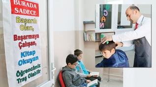 Erzincan'daki Şehit Pilot Teğmen Serkan Sağır İlkokulu Müdürü Muammer Doğan, öğrencileri kitap okumaya teşvik etmek için "Kitabını Oku, Tıraşını Ol" projesini hayata geçirdi.