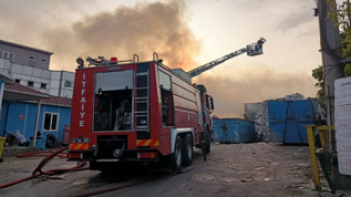 Vezirçiftliği Mahallesi'ndeki bir geri dönüşüm tesisinin açık bölümünde plastiklerin bulunduğu paletlerde henüz bilinmeyen nedenle yangın çıktı. Kısa sürede büyüyen alevler tesise sıçradı.