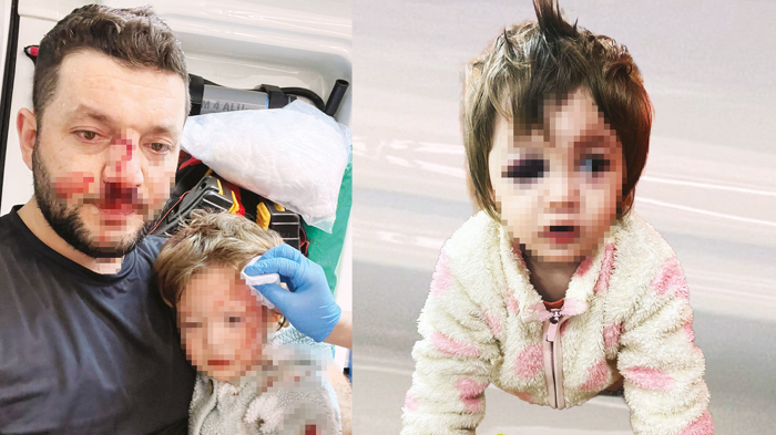 Küçük kızın başında çatlaklar, babanın ise burun ve baş bölgesinde kırıklar oluştu.