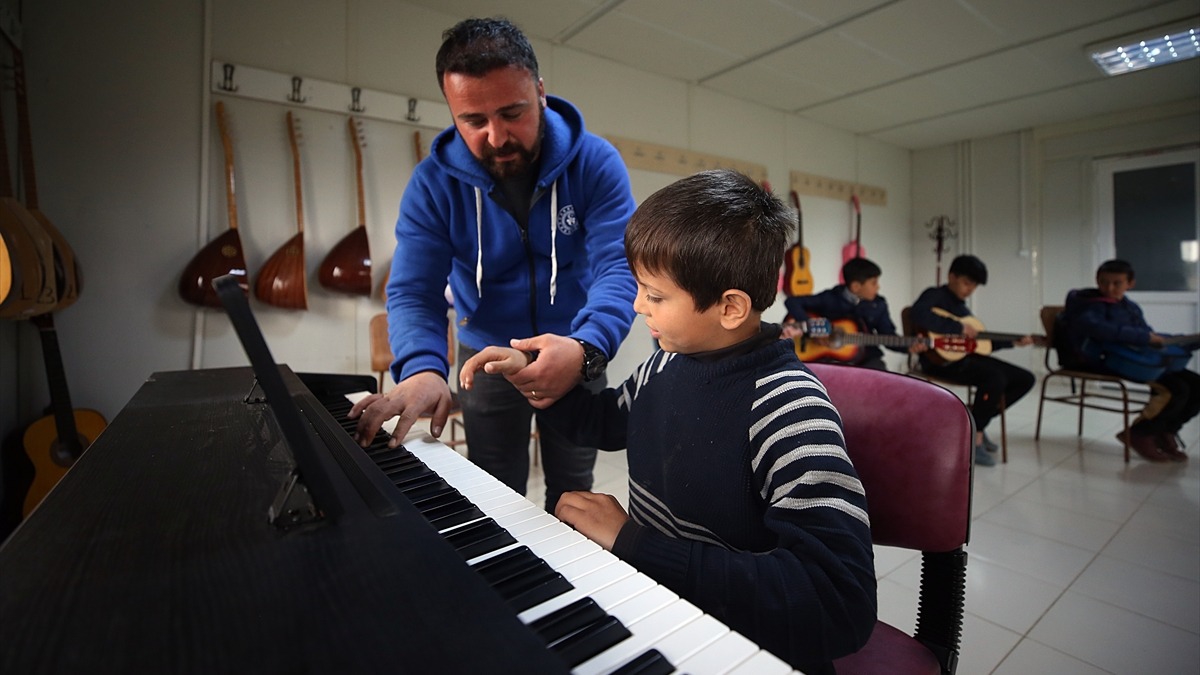 Malatya'da konteyner kentte oluşturulan gençlik merkezinde 500 çocuk ve genç, uzmanlar eşliğinde çeşitli alanlarda eğitim alıyor. Özellikle gitar ve piyano dersine yoğun ilgi olduğunu söyleyen Gençlik Merkezi Müdürü Abdullah Doğan "Büyükler barınma sağlayabilir ama çocukların psikolojik olarak düzelebilmeleri için spor ve eğitsel oyunlar, kültürel faaliyetler şart" dedi.