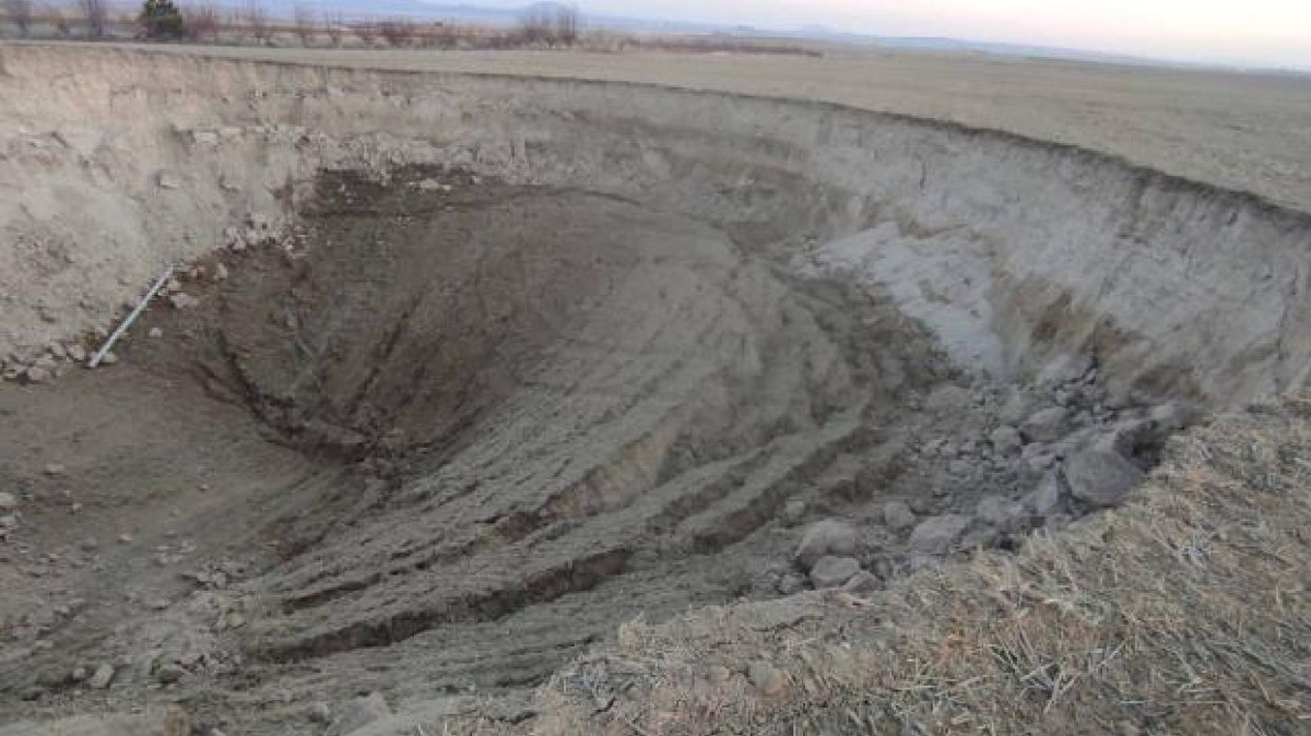 Konya'nın Karapınar ilçesinde, 37 metre çapında ve 12 metre derinliğinde obruk oluştu.