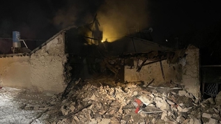 İtfaiye ekiplerinin yangına müdahalesi sırasında, evin çatı katı çöktü. Söndürme çalışmalarının ardından, olay yerine gelen iş makineleriyle evin enkazı kaldırıldı.