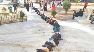 Şanlıurfa'da Cengiz Topel Mahallesi'nde bulunan İl Halk Kütüphanesi'nde ders çalışabilmek için yer bulmak isteyen öğrenciler sabah erken saatlerden itibaren bina önüne geliyor. Sınırlı kapasitede olan salona girebilmek için öğrenciler sırt çantalarını yere bırakarak sıra oluşturuyor.
