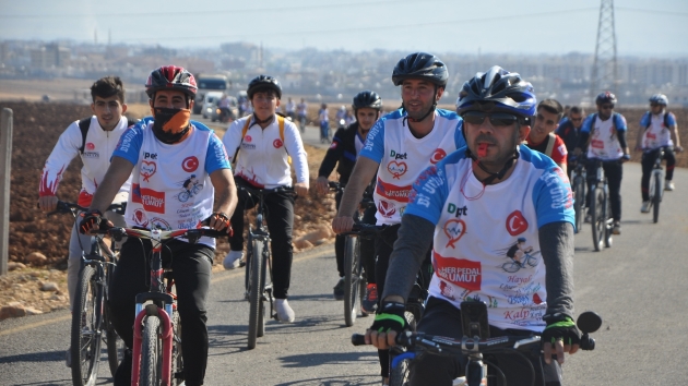 Merkezden start alan 50 kişilik bisikletli grup, yaklaşık 10 kilometre pedal çevirdi. Cudi Dağı eteklerindeki Esenli köyünde sonlanan etkinlikte lösemi hastaları için hazırlanan pasta kesildi.
