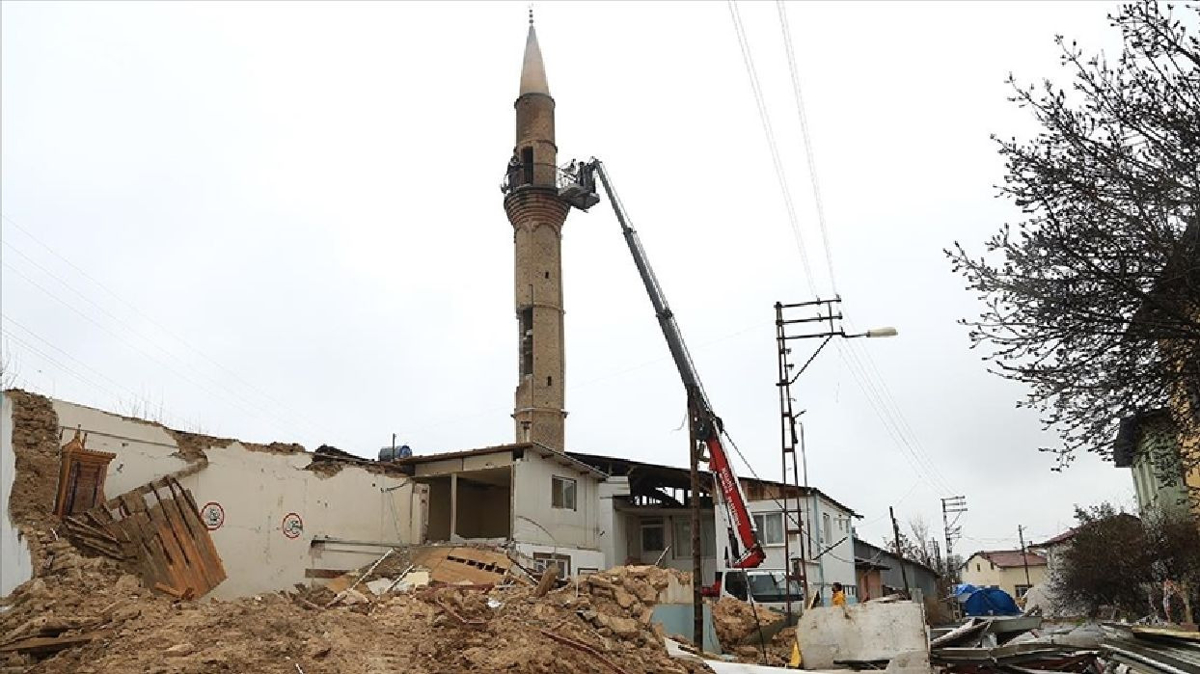 Malatya'da depremde ağır hasar gören cami ve minaresi iş makinesiyle yıkıldı