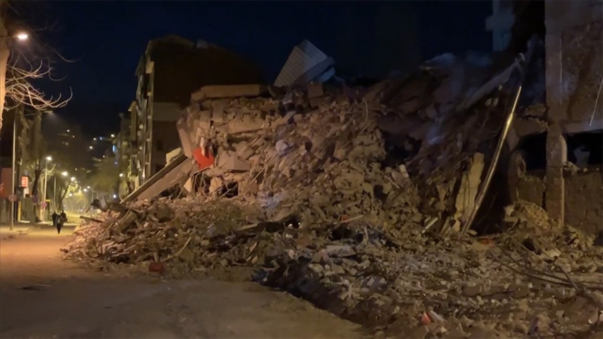 Malatya'da depremlerde bir kısmı yıkılan bina Sincik merkezli depremde çöktü