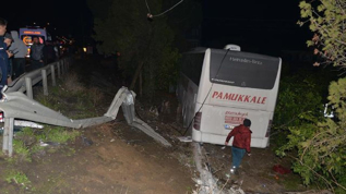 Çarpışmanın ardından otobüs, yoldan çıkıp önce elektrik direğine sonrasında da meyve bahçesindeki ağaçlara çarparak durdu. Kamyonet de kontrolden çıkarak karşı yöne geçti.