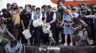 Çevre ve Şehircilik Bakanı Murat Kurum ve Tarım ve Orman Bakanı Bekir Pakdemirli, Marmara Denizi'ne 15 ton midye bıraktı.