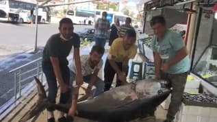 Dev orkinos balığını görenler şaşkınlıklarını gizleyemedi!