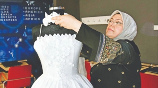Kırıkkale'de moda tasarım öğretmeni Şerife Timurlenk, üretim hatası medikal maskelerden gelinlik hazırladı.