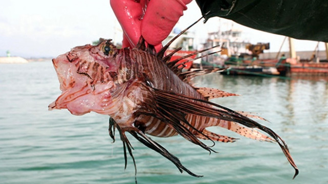 Pasifik ve Hint Okyanusu'nda yaşayan Aslan balığı, Mersin'de bir balıkçının ağına takıldı. Uzmanlar, balığın tehlikeli olduğunu ve dikenlerine dokunulmaması uyarısında bulundu.