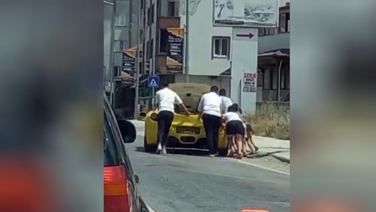 Sakarya'nın Sapanca ilçesinde milyonluk ultra lüks otomobil Ferrari arıza yaparak yolda kaldı. Mahalleli yolda kalan aracı ittirerek çalıştırmaya çalıştı. O anlar kayıt altına alındı. Sürücüye yardım edebilmek için otomobili ittiren vatandaşların görüntüsü sosyal medyada görenleri güldürdü.