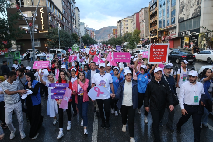 Muş'ta '11. Uluslararası Onkoloji Günleri' düzenlendi. Farkındalık yürüyüşüne katılan yüzlerce kişi, yağan yağmura aldırış etmeden halay çekip eğlendi.