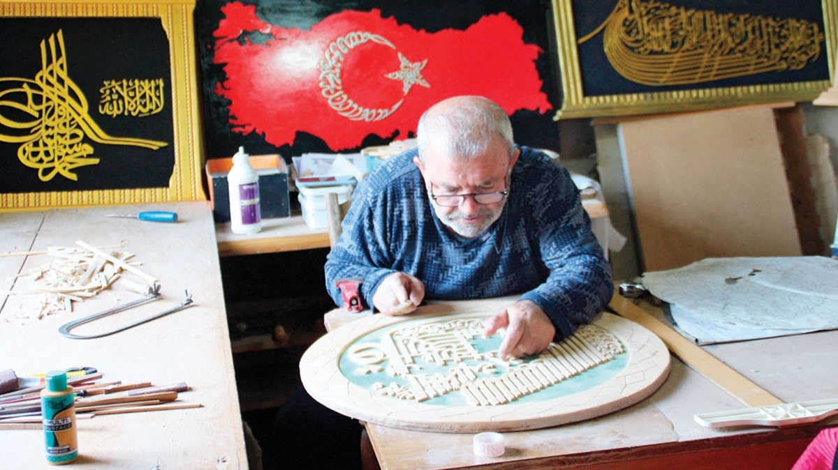 Naht ustası Yusuf Derelli, yıllardır atölyesinde ahşabı nakış nakış işliyor.