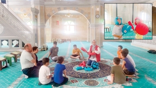Zonguldak'ın Alaplı Gençlik Merkezi ve İlçe Müftülüğü işbirliğiyle düzenlenen kursa katılan öğrencilere" Okul öncesi din öğretimi projesi" doğrultusunda camide 7-16 yaş grubunda 20 çocuğa, oyunlarla Kur'an-ı Kerim öğretiliyor.