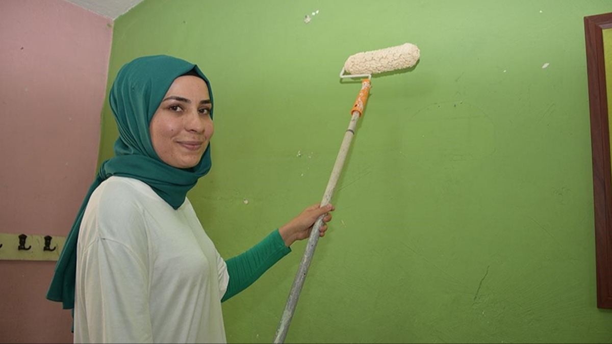 Şanlıurfa'nın Siverek ilçesinde öğretmen İnci Görgün, görevli olduğu kırsal mahalledeki Kesmekaya İlkokulu'nun dış cephesini ve sınıflarını boyadı.