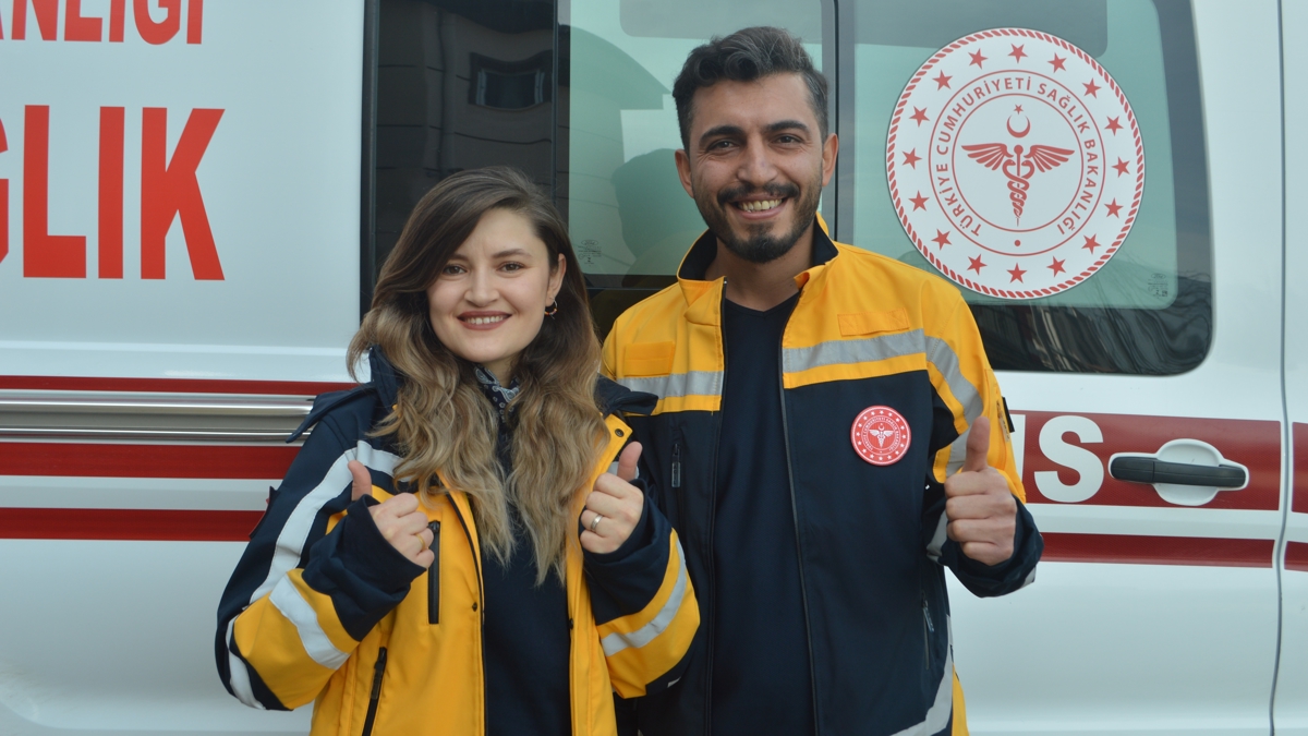 Hasta ve yaralıların imdadına aynı ambulansta yetişen çift, "Aynı ambulansta çalışmak çok güzel ve güven verici. Birlikte hayat kurtardığımız ve insanların hayatına dokunduğumuz için çok mutlu oluyoruz. Ambulansı hem işimiz hem de evimiz gibi görüyoruz" diyor.