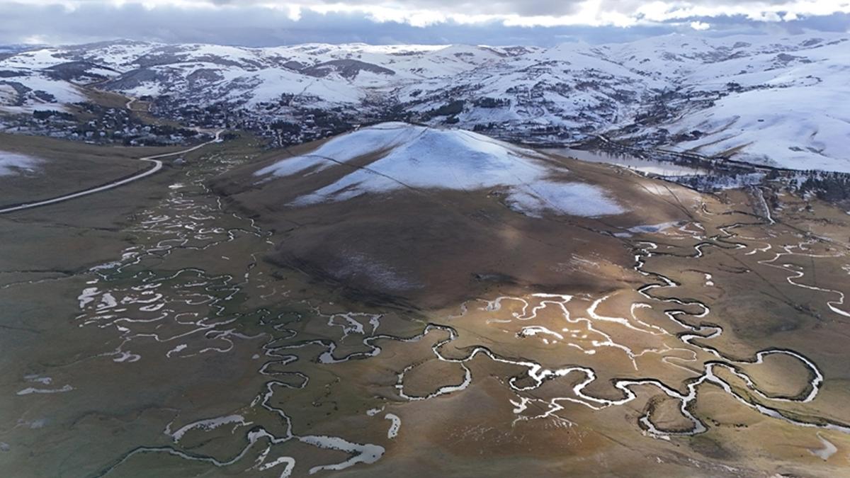 Öte yandan, yaylanın bazı bölgelerinde etkili olan kar yağışının ardından oluşan manzara dron ile görüntülendi.