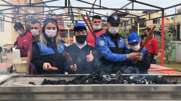 Polisleri gören özel çocuklar büyük mutluluk yaşadı. Çocuklarla oyun oynayan polisler, onları polis aracına ve motosikletine bindirdi. Motosikletlerin üzerinde hatıra fotoğrafı çektiren özel çocuklar, etkinliğin sonunda emniyet mensuplarıyla mangal başına geçerek Adana kebabı pişirdi.
