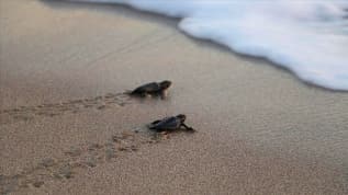 Yuvalarından çıkan 130 caretta caretta, denize ulaştı.