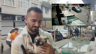 İstanbul'da bir esnaf, binanın 3'üncü kat penceresinden düşen kediyi havada yakaladı.