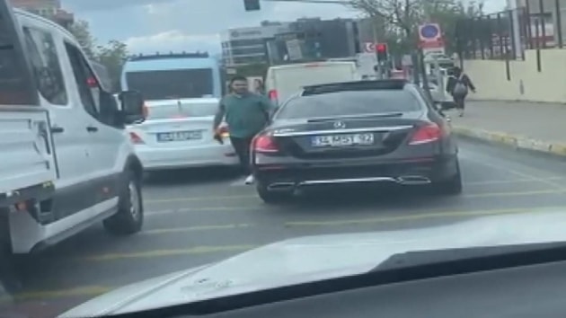 Pendik'te silahlı sürücü iddiaya göre trafikte otomobiline sürten sürücüye silah çekti. Silahlı kişinin otomobilini kontrol ettikten sonra aracına binip gitmesi cep telefonu kamerasına yansıdı.