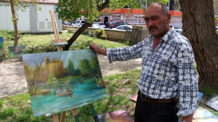 Sivas'ta ve ayakkabı boyacılığı yapan Murat Ünser, resim yeteneğiyle kendisine hayran bırakıyor.