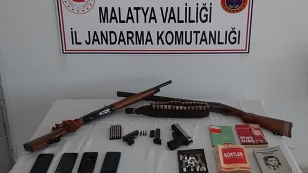 Yapılan aramalarda, 1 adet 6,35 mm Browning marka tabanca,6 adet 6,35 tabanca fişek,1 adet kurusıkı tabanca,57 adet kurusıkı tabanca fişeği, 1 adet otomatik av tüfeği,1 adet çift kırma av tüfeği, 31 adet av tüfeği fişeği, 5 adet örgütsel kitap, 4 adet cep telefonu ele geçirildi.