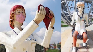 Sağlık çalışanlarına ithafen inşa edilen çirkin heykeller tepkiler üzerine kaldırıldı.