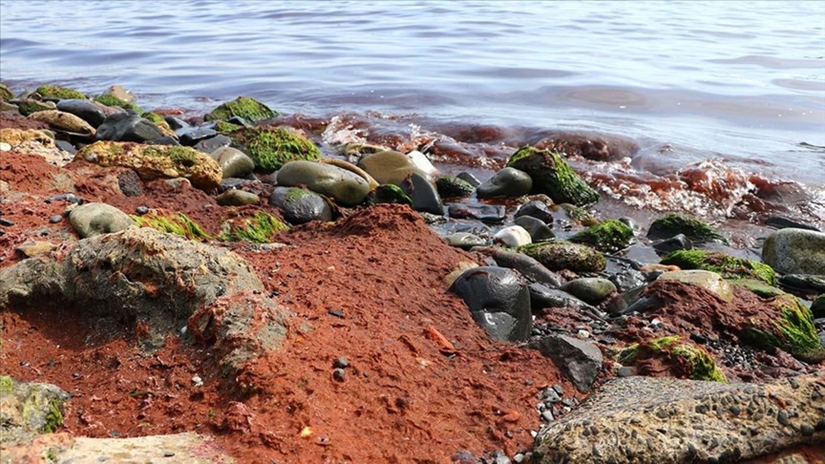 Sahildeki bazı alanlar da kırmızı yosunla kaplandı.