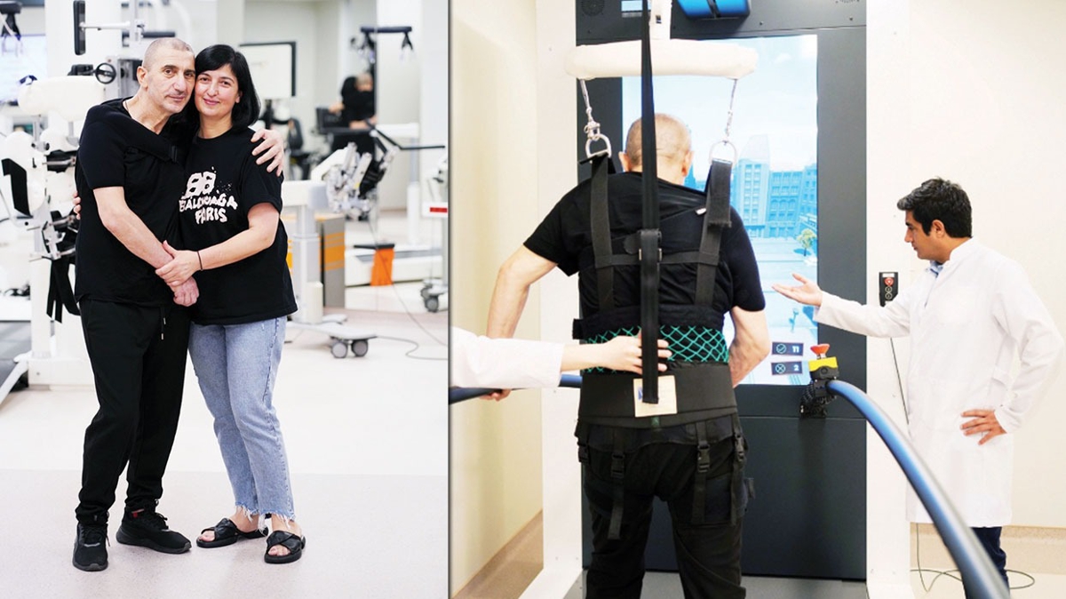 Phridon Surmanidze yatağa bağımlı kalmasından dolayı vücudunda çok ağır şekilde iltihaplı yatak yaralarının derin acısını çekiyordu. Ailece umutlarını kaybetseler de çaresizlik içinde araştırmalar yapıp son bir umutla dört ay önce Türkiye'ye geldiler. Yapılan operasyonlarla yatak yaraları düzelmeye başlarken, Robotik Rehabilitasyon tedavisi sayesinde ayağa kalkmaya başladı ve her geçen gün sağlığı yerine geldi. Eşi Fatima Surmanidze o günleri şöyle anlatıyor: "Umutsuzluk içinde son bir umutla geldik. Burada ilk günden itibaren büyük bir sevgi, ilgi ve destek hissettik. Herkes bizimle çok ilgilendi. Eşimin de her geçen gün daha iyiye gittiğini görmek yeniden umutlanmamızı sağladı. Ben burada inandım ki kocamı iyileştireceğiz ve Gürcistan'a sağlıkla götüreceğiz. Kendisine de hiç korkmamasını, burada iyileşeceğine inancımızın ve onu buradan evimize iyileşerek götüreceğimize güvenimizin tam olduğunu söyledim."